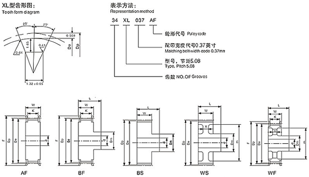 XL型標(biāo)準(zhǔn)皮帶寬037(9.5mm)